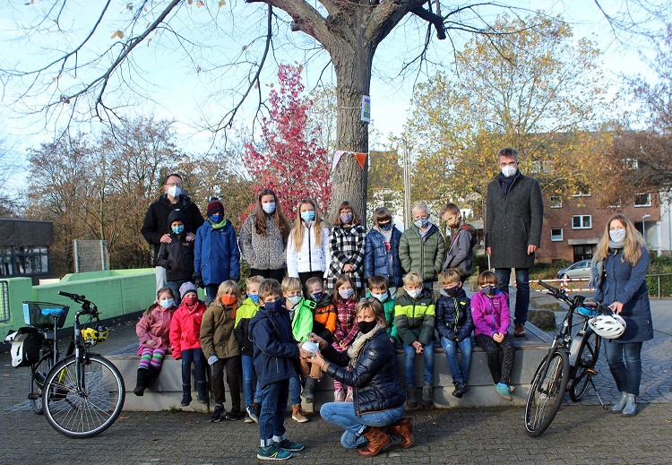Nachdem die meisten Gewinnerinnen und Gewinner bereits am 08. Oktober ausgezeichnet wurden, erhielt am 06. November nun auch die „Pferde-Klasse“ von Sebastian Kirch der Werner Richard Schule ihren Preis in der Kategorie „Beste Schulklasse“. Fünf Schülerinnen und Schüler erradelten insgesamt 251 km und somit durchschnittlich 50,3 Kilometer und konnten sich gegen drei weitere Klassen durchsetzen. „Es ist schön zu sehen, dass durch das Projekt auch bei Schülerinnen und Schülern die Begeisterung fürs Radfahren unterstützt werden konnte“, freut sich die lokale Agendabeauftragte Sonja Fielenbach, die bei der Preisübergabe auf dem Schulhof anwesend war. Iris Wasser von der DEW 21 überreichte der Klasse einen Zuschuss für die Klassenkasse von 100 Euro.