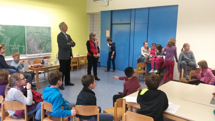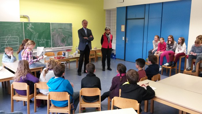 Nachdem nun die Namensänderung feststeht, besuchte uns der Vorstand der Werner-Richard-Stiftung, um mit den Kindern über die Person Werner Richard zu sprechen und zu zeigen, wer er war und was er alles Gutes für die Stadt und die Kinder gemacht hat. Darüber hinaus konnten die Kinder Fragen stellen, die im Schülerparlament und der Schülerzeitung erarbeitet worden sind. Herr Plassmann gab bereitwillig Antwort und konnte mit seiner humorvollen Art die Kinder informieren. Natürlich wurde auch über die Kooperation gesprochen und wie wir in Zukunft mit der Stiftung zusammenarbeiten können. Ein Besuch im Werner-Richard-Saal ist auf jeden Fall schon eingeplant.
