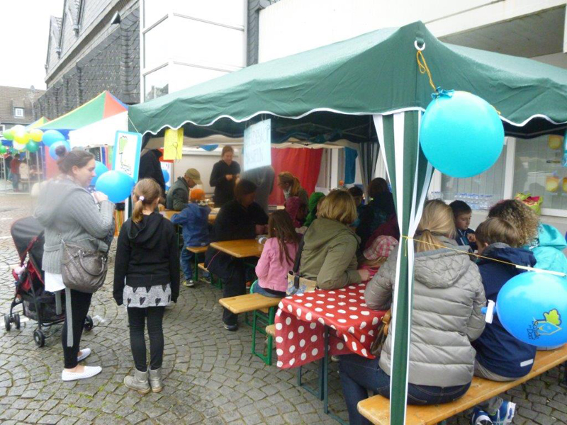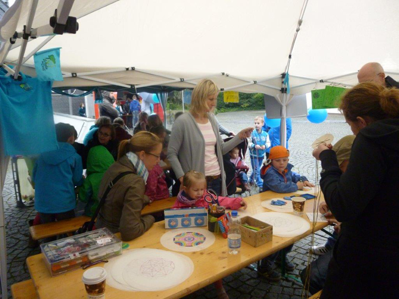 Auch in diesem Jahr waren wir auf der Kreativen Straße der Herdecker Maiwoche mit einem eigenen Stand vertreten. Trotz leichtem Regen waren viele Kinder gekommen um mit uns zu basteln, zu staunen und lecker Kuchen zu naschen. Bei uns konnte man Mandalas malen oder besticken, Freundschaftsbänder knüpfen, ein Kaleidoskop basteln oder eine Rakete steigen lassen.