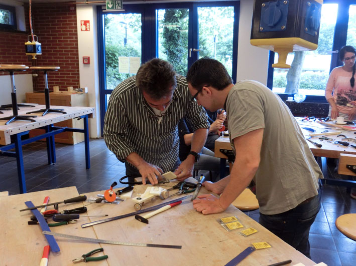 Bei dieser praktischen Arbeit vor Ort konnten die Lehrerinnen und Lehrer erleben, dass mit einfachen Mittel, geringen Kosten und etwas motorischem Geschick ansprechende Modelle gebaut und Technik so praxisorientiert auch in der Grundschule vermittelt werden kann.