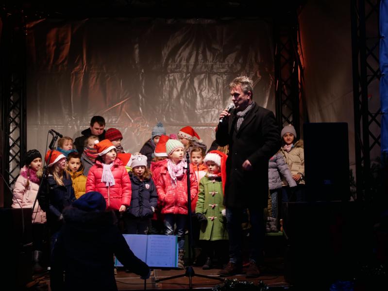 Der Chor der Werner Richard Schule singt vielfältige Lieder und versprüht damit einen Hauch von Weihnachten in der Füßgängerzone.